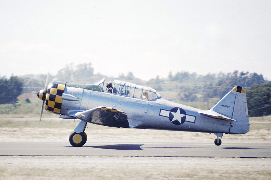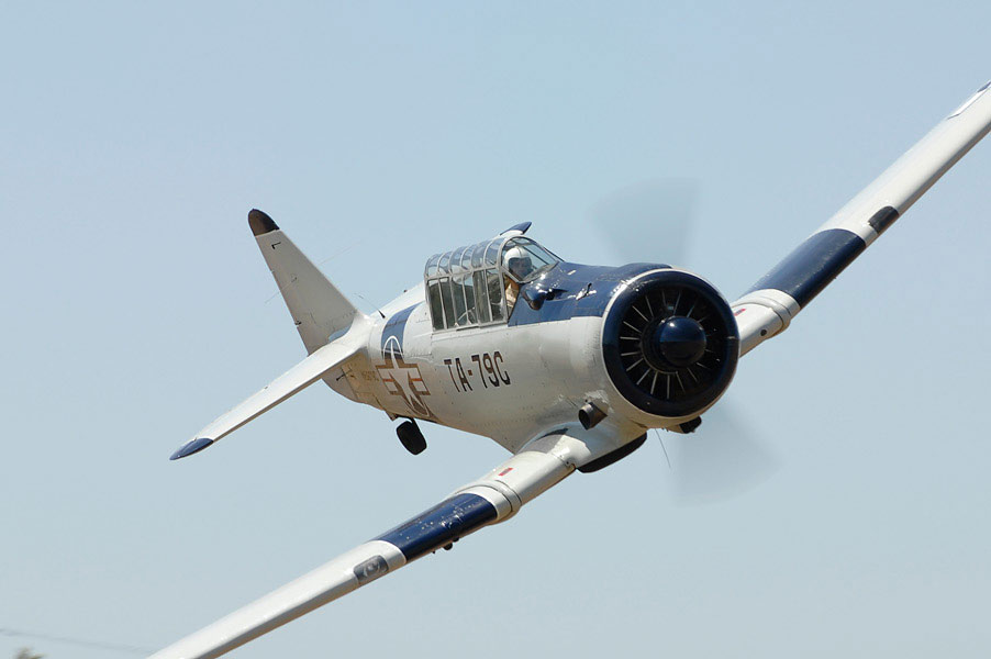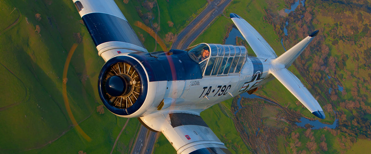 Just like our P-51D, T-6 79C has been operated by California Warbirds in many locations since the early 70's and is currently based in Hollister, CA. Our aircraft, built in 1944 represents one of the more common versions, the AT-6D, in which 4,500 were manufactured. 79C frequents many west coast airshows and helps serve as a new and recurrent trainer for the P-51D.