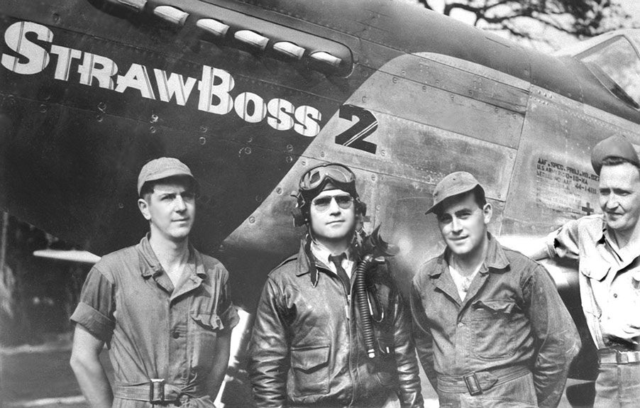 StrawBoss 2 was flown by 328 Fighter Squadron/352nd FG, Col. James D Mayden. Born in 1912, Mayden graduated from Kansas State College in 1935. He did his primary and advanced training in Randolph/Kelly Texas and went on to fly P-26's, P-36's, P-39's along with P-40's stateside before flying P-51's overseas.